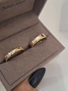 się powierzchni jak dla przykładu obrączki wykończone w technologii matowania, piaskowania,