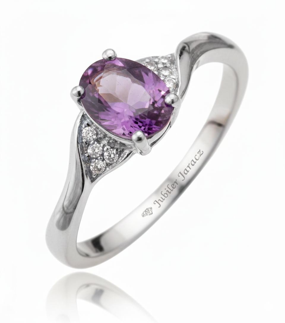 Pierścionek złoty z ametystem i diamentami J-PD24