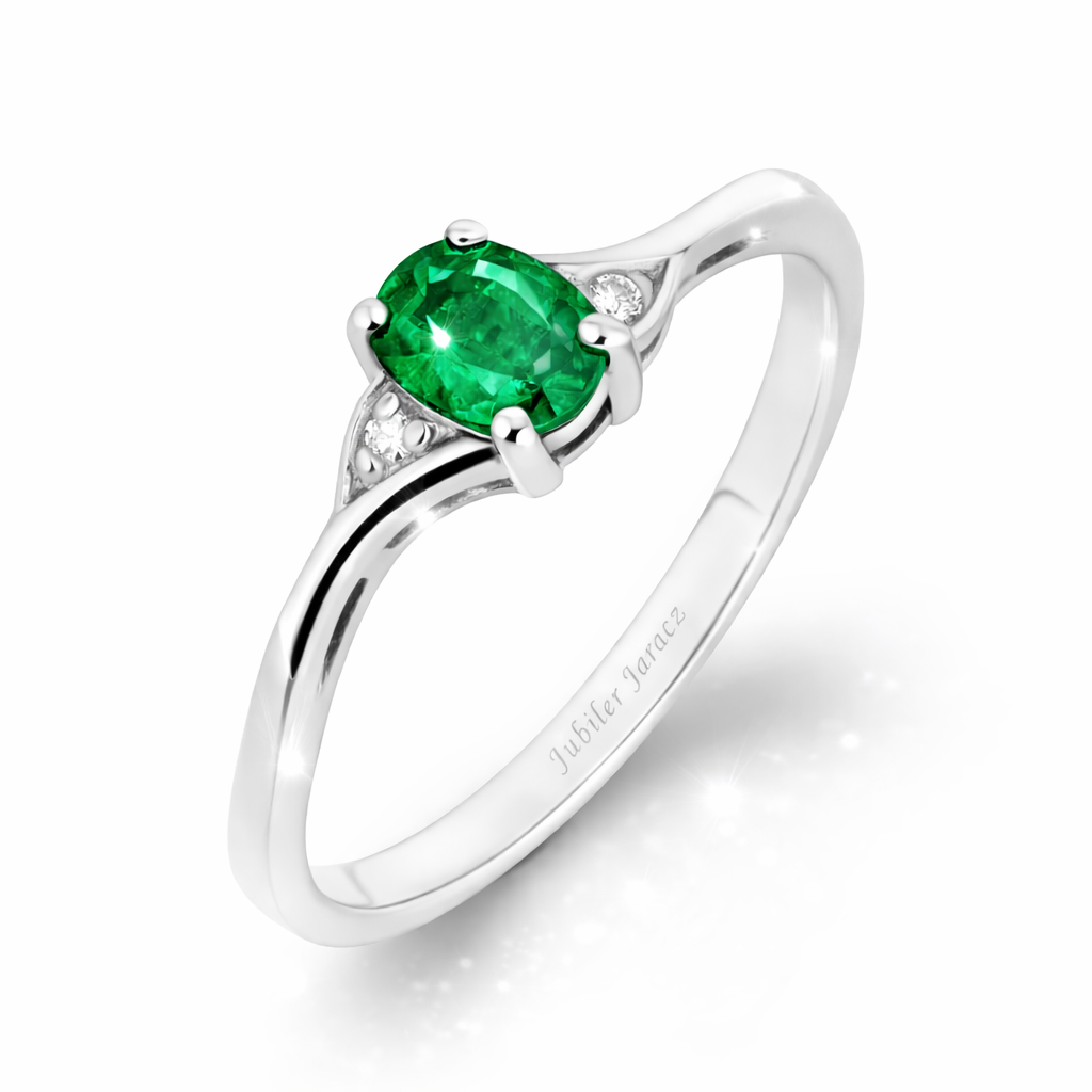 Pierścionek złoty z szmaragdem i diamentami J-PD20