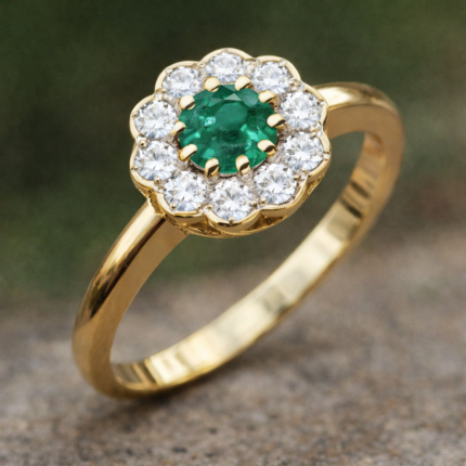 Pierścionek złoty ze szmaragdem i diamentami BD-W10