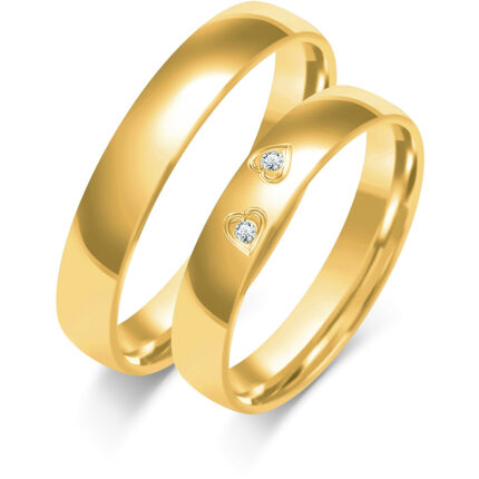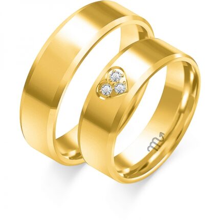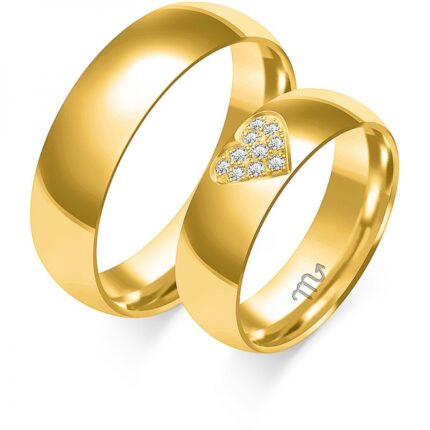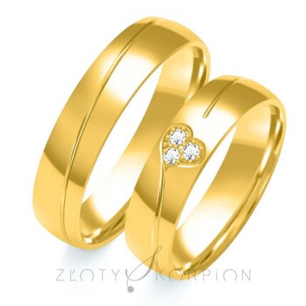 Kolekcja STYLOVE, Obrączki nowoczesne, Obrączki płaskie, Obrączki z diamentem, obrączki z motywem serca, Obrączki z żółtego złota