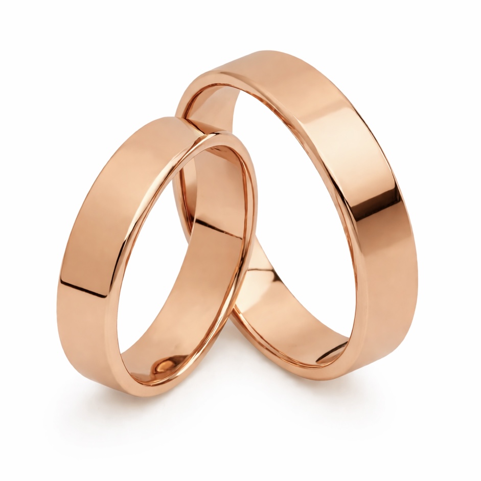 Obrączki różowe złoto J019 płaskie fazowane z soczewką
