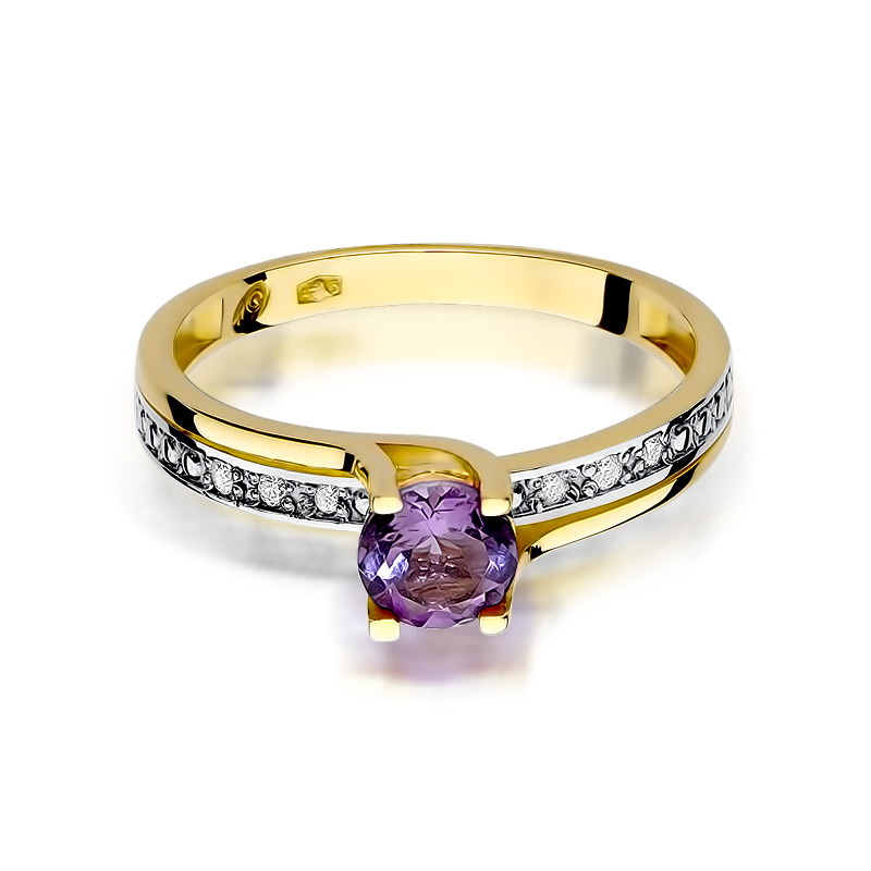 Pierścionek złoty z ametystem i diamentami BD-W106