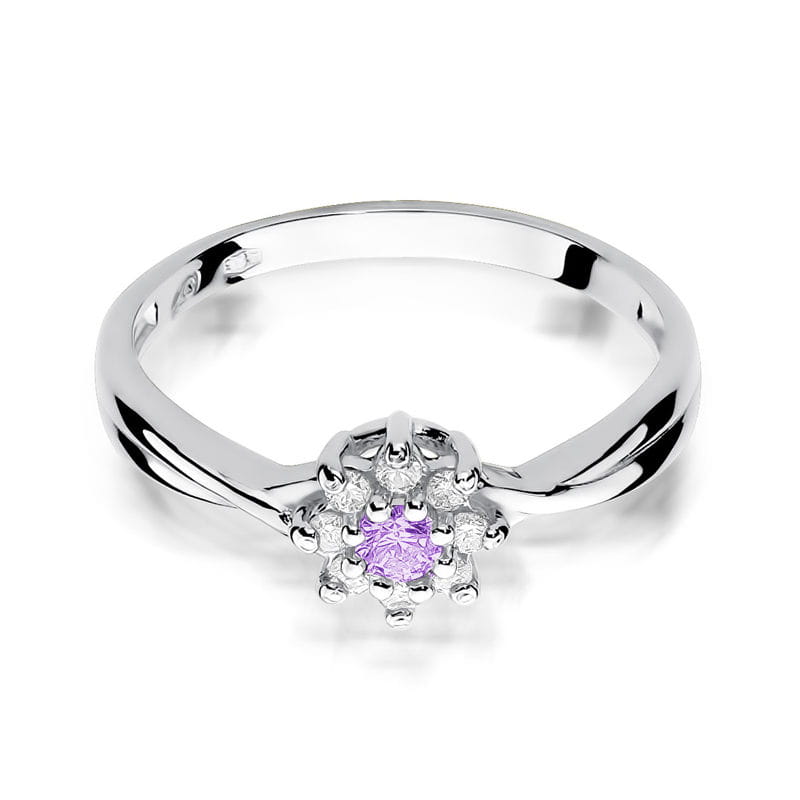 Pierścionek złoty z ametystem i diamentami BD-W72B