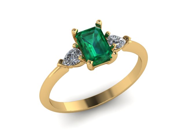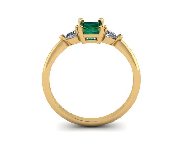 Kamienie: centralny szmaragd laboratoryjny 0,50ct; boczne diamenty laboratoryjne łącznie 0,20ct 2szt.