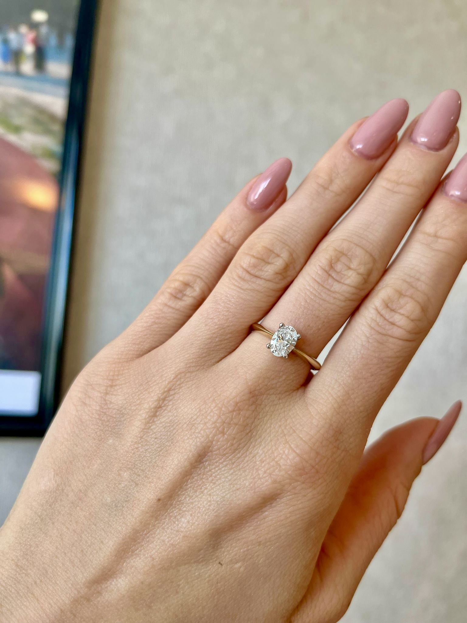 Pierścionek złoty z owalnym diamentem laboratoryjnym