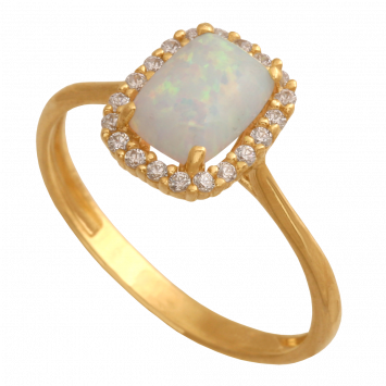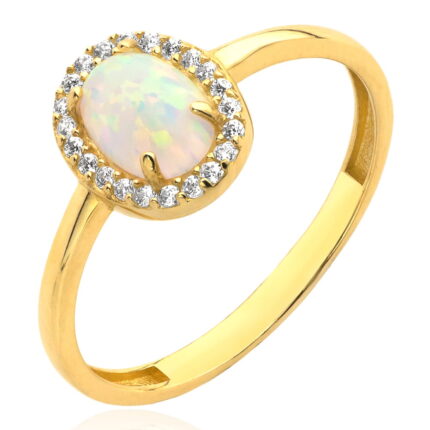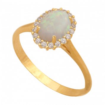 Pierścionek złoty z opalem i cyrkoniami