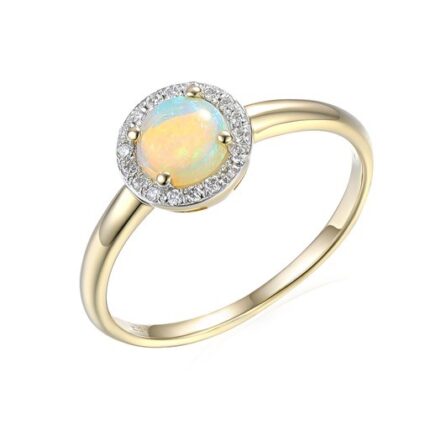 Pierścionek złoty z opalem i diamentami
