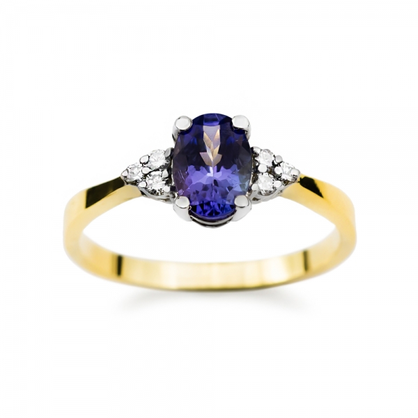 Pierścionek złoty z szafirem i diamentami J-PD