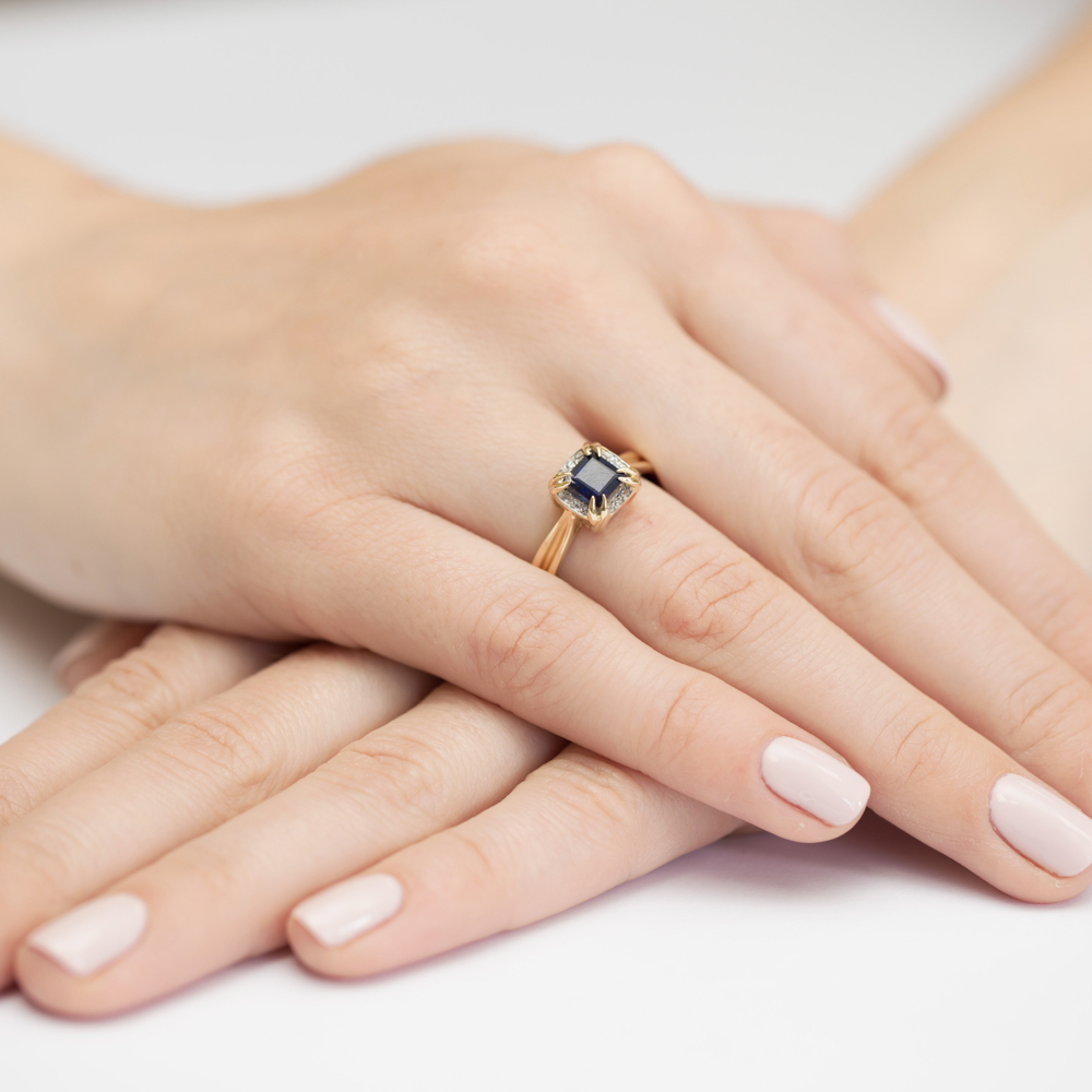 Pierścionek złoty z szafirami i diamentami BD-W358