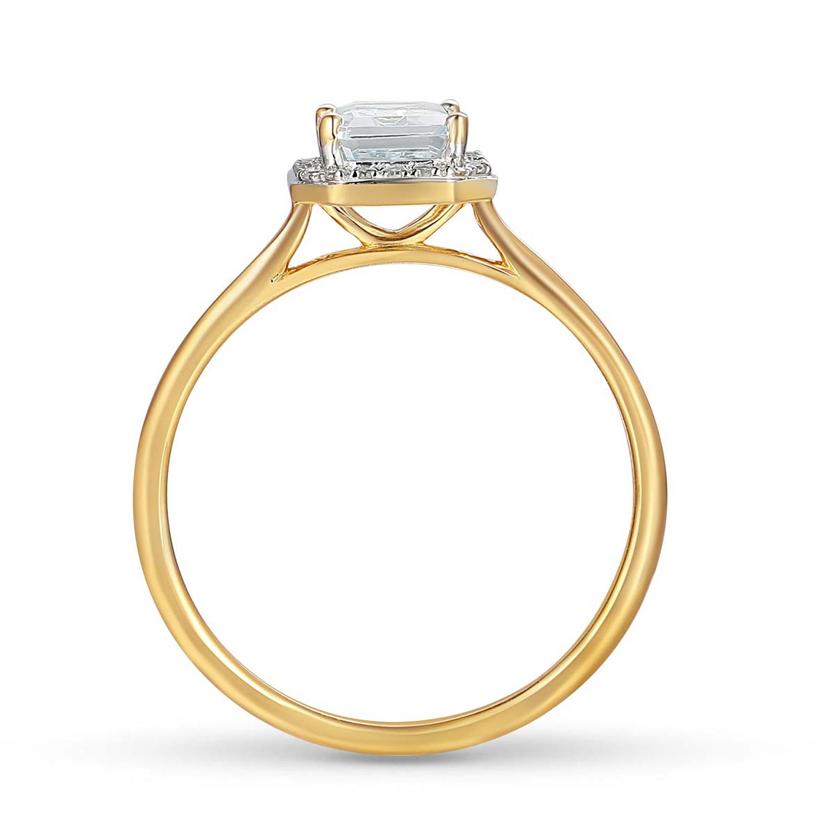 Pierścionek złoty z białym topazem i diamentami