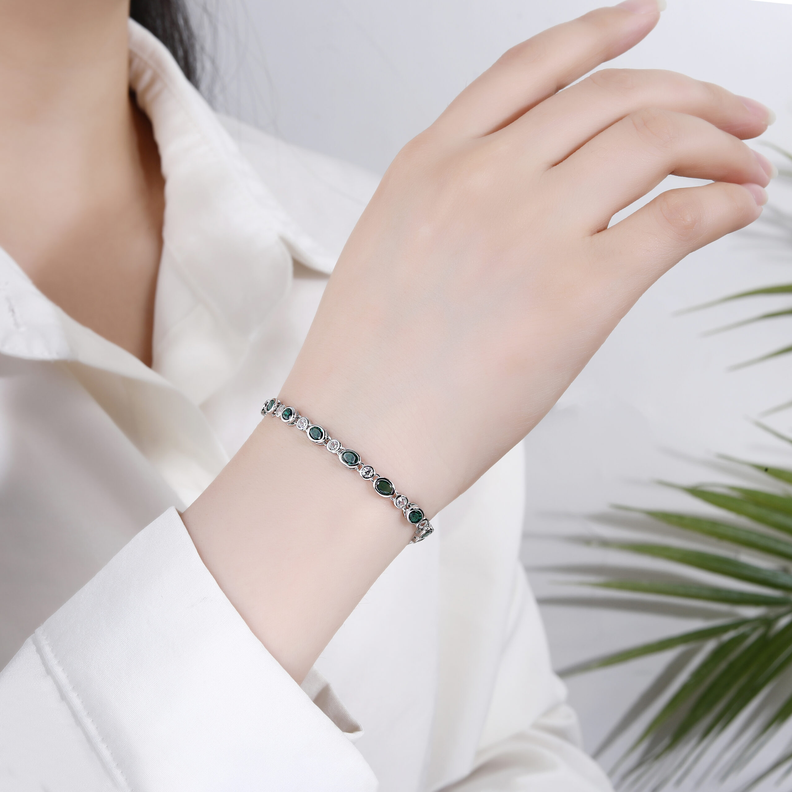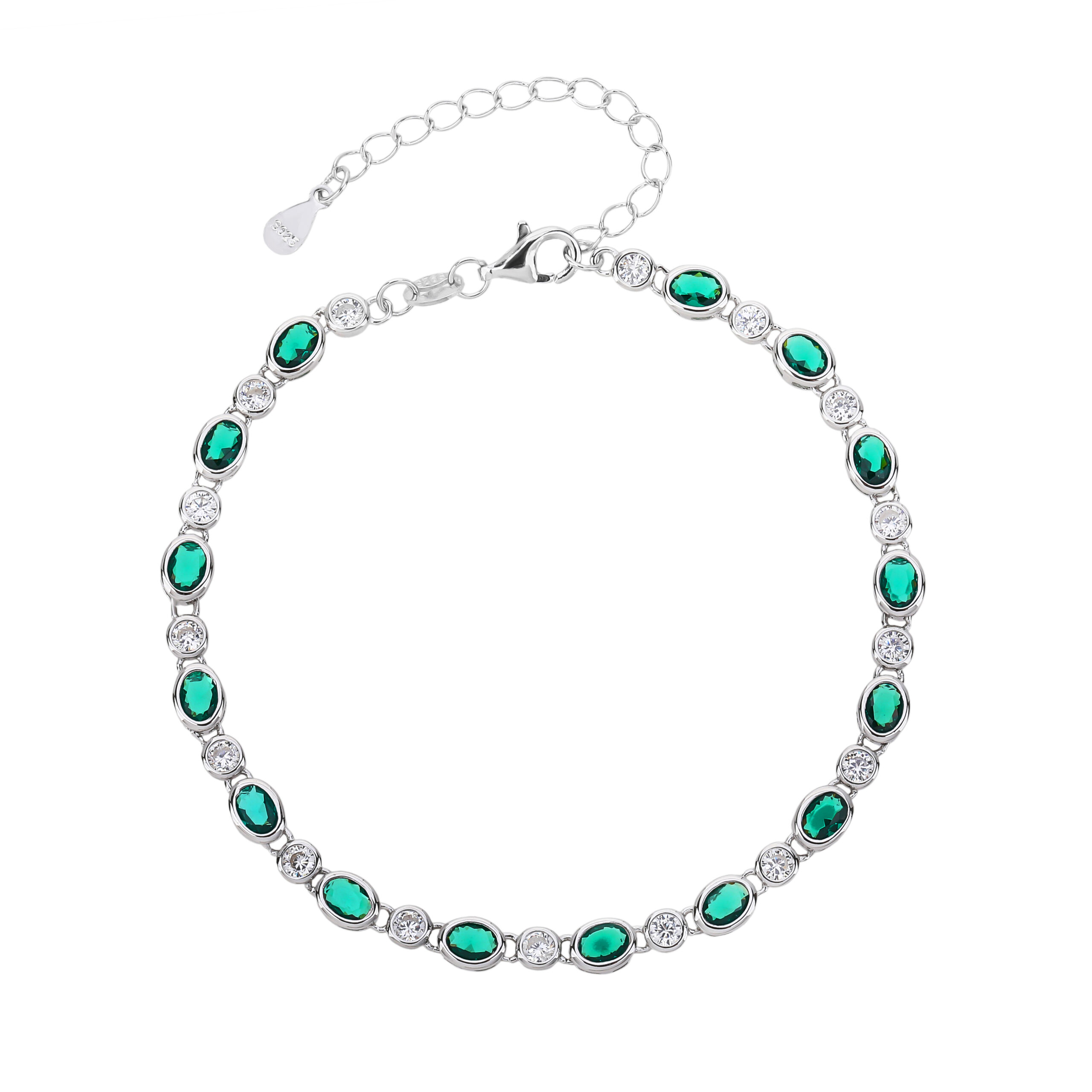 Bransoleta srebrna z zielonymi cyrkoniami
