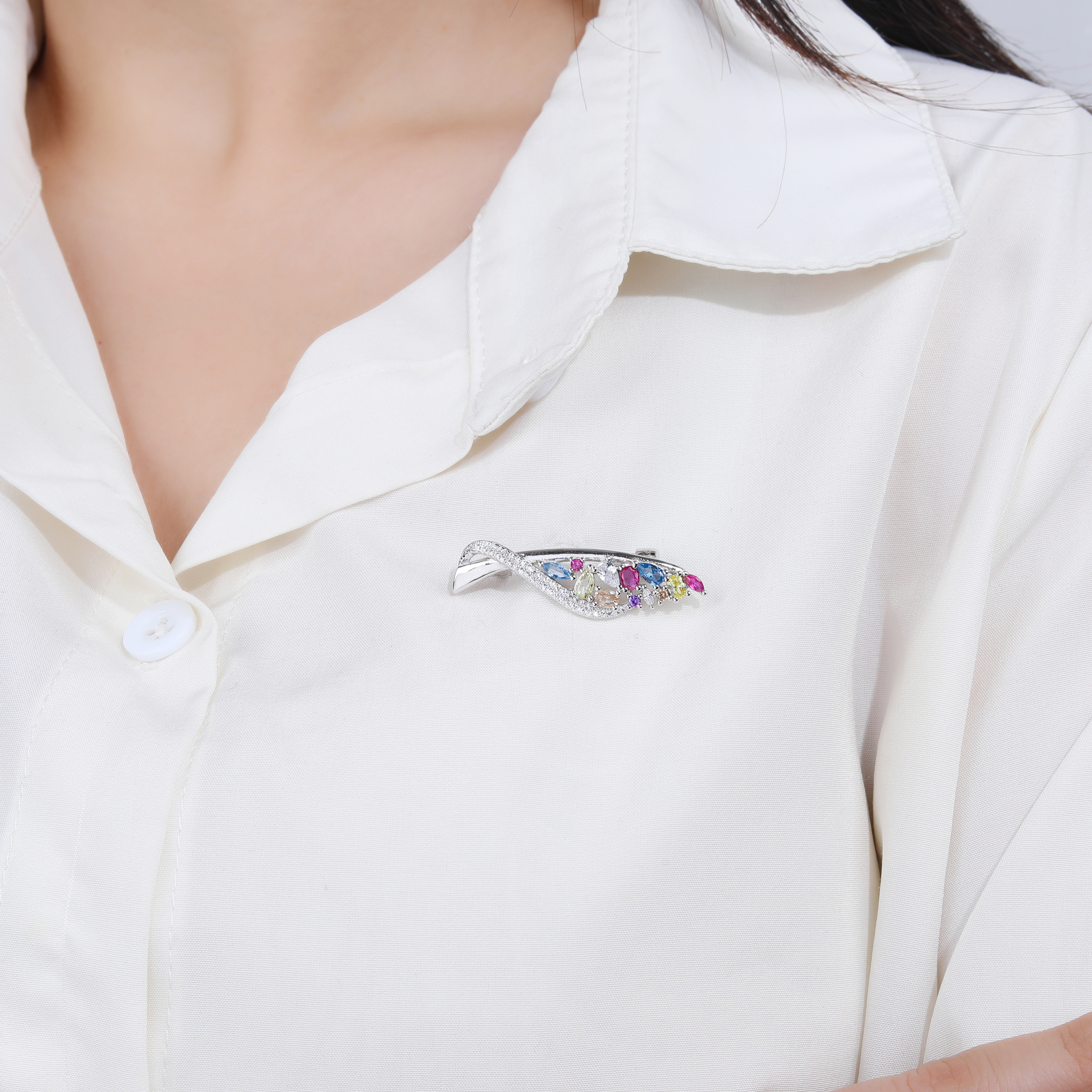 Broszka srebrna 925 z kolorowymi cyrkoniami