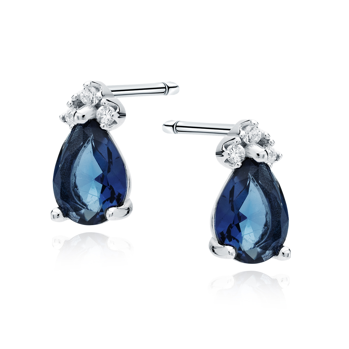 Kolczyki srebrne łezki szafirowe z cyrkoniami