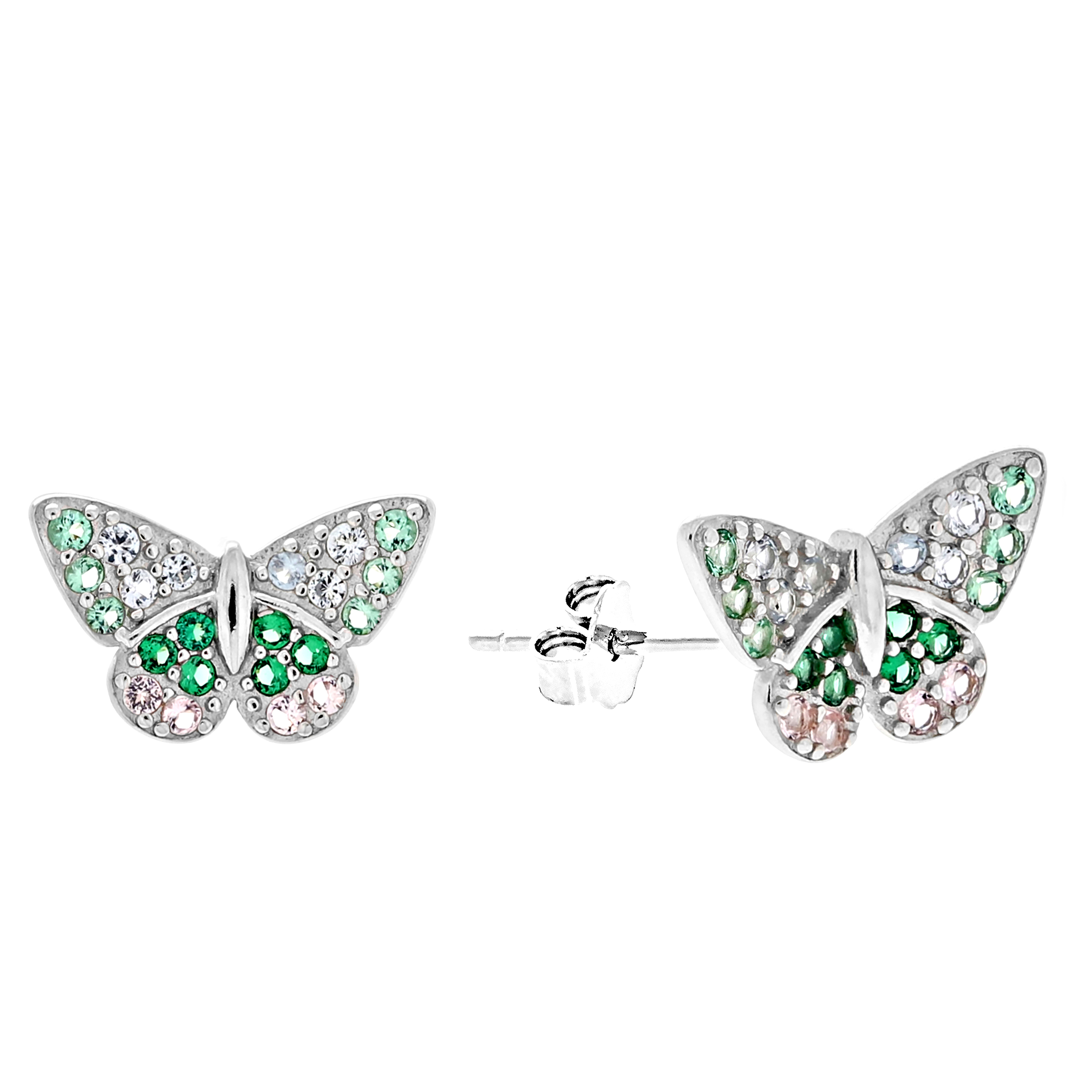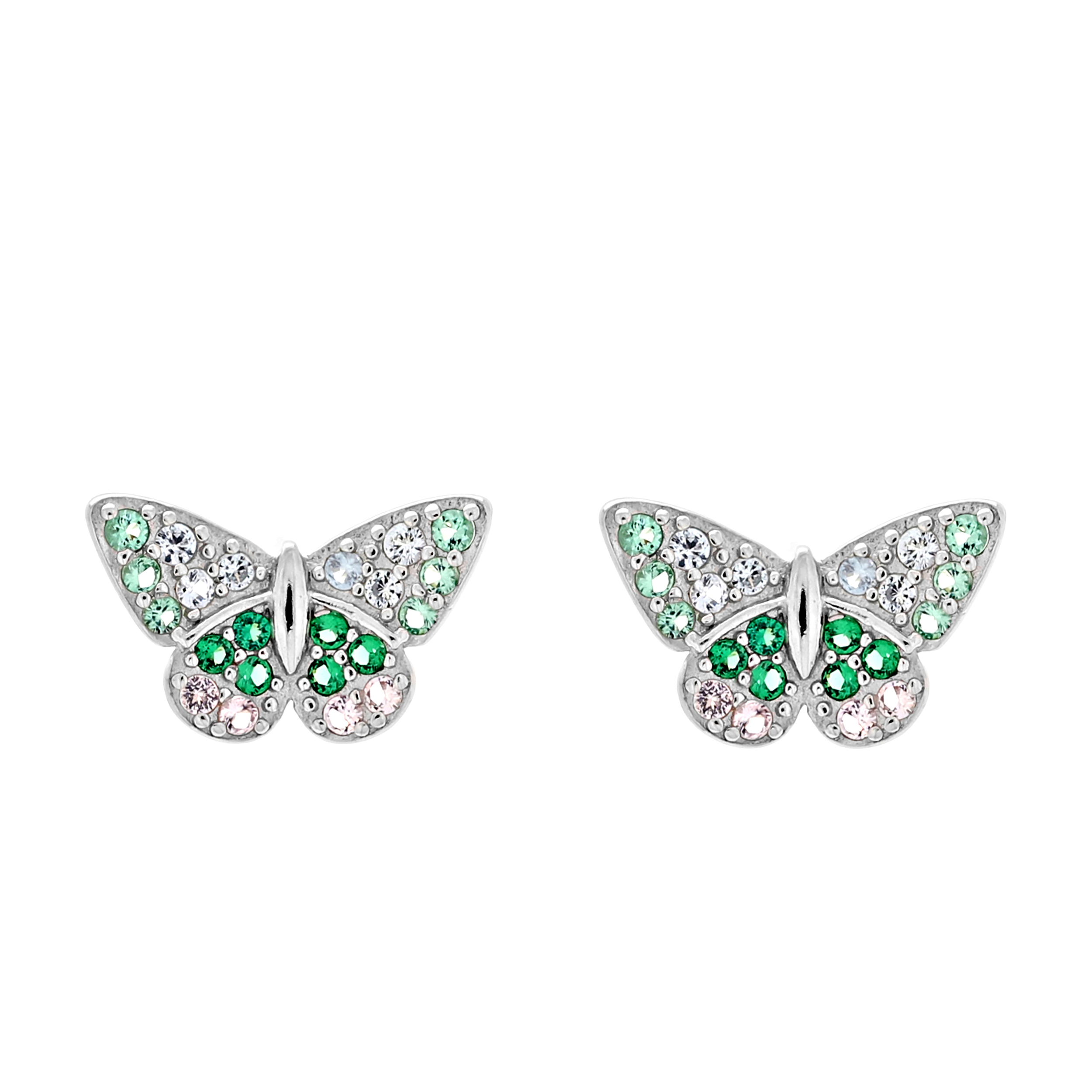 Kolczyki srebrne motylki z zielonymi cyrkoniami