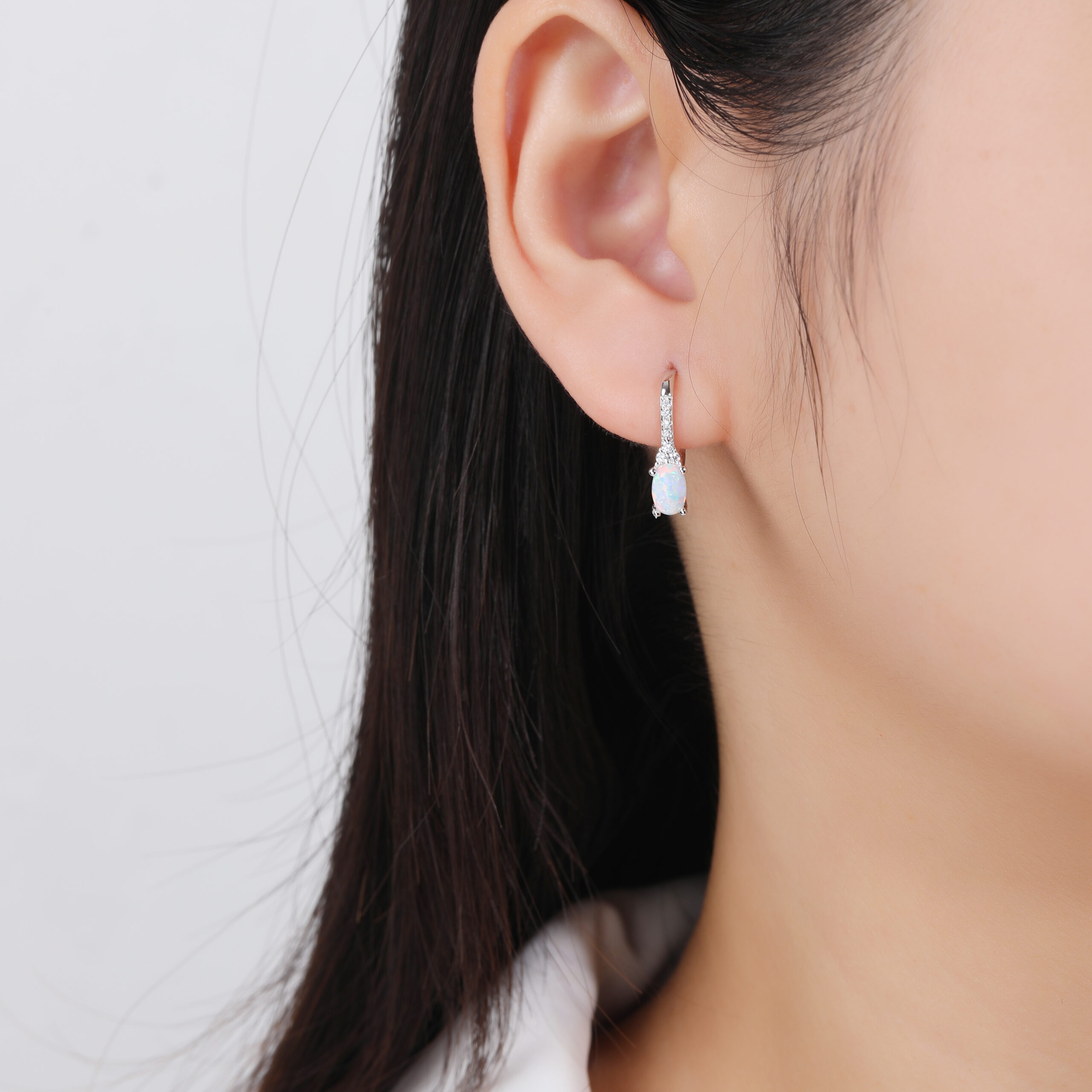 Kolczyki srebrne z opalem i cyrkoniami