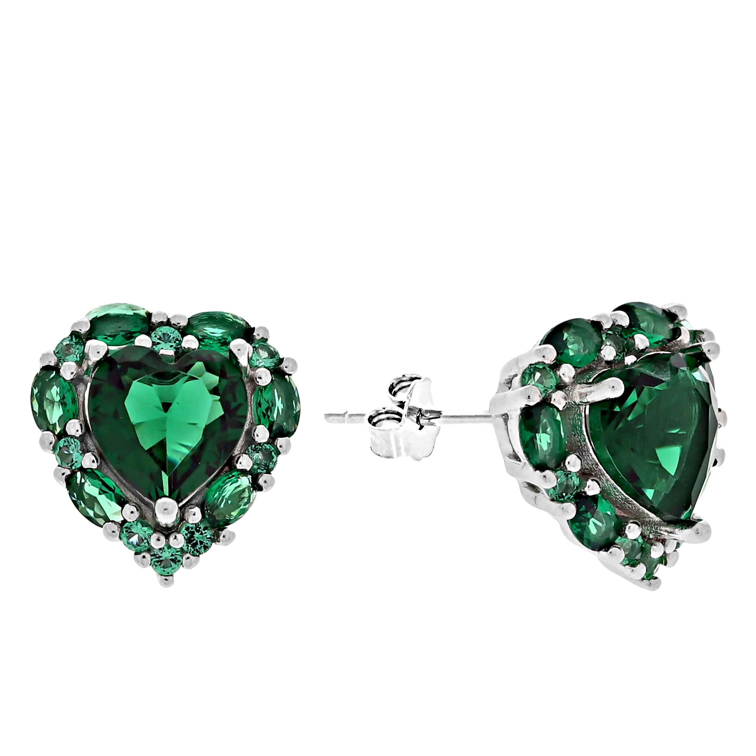 Kolczyki srebrne serca z cyrkoniami w odcieniach zieleni
