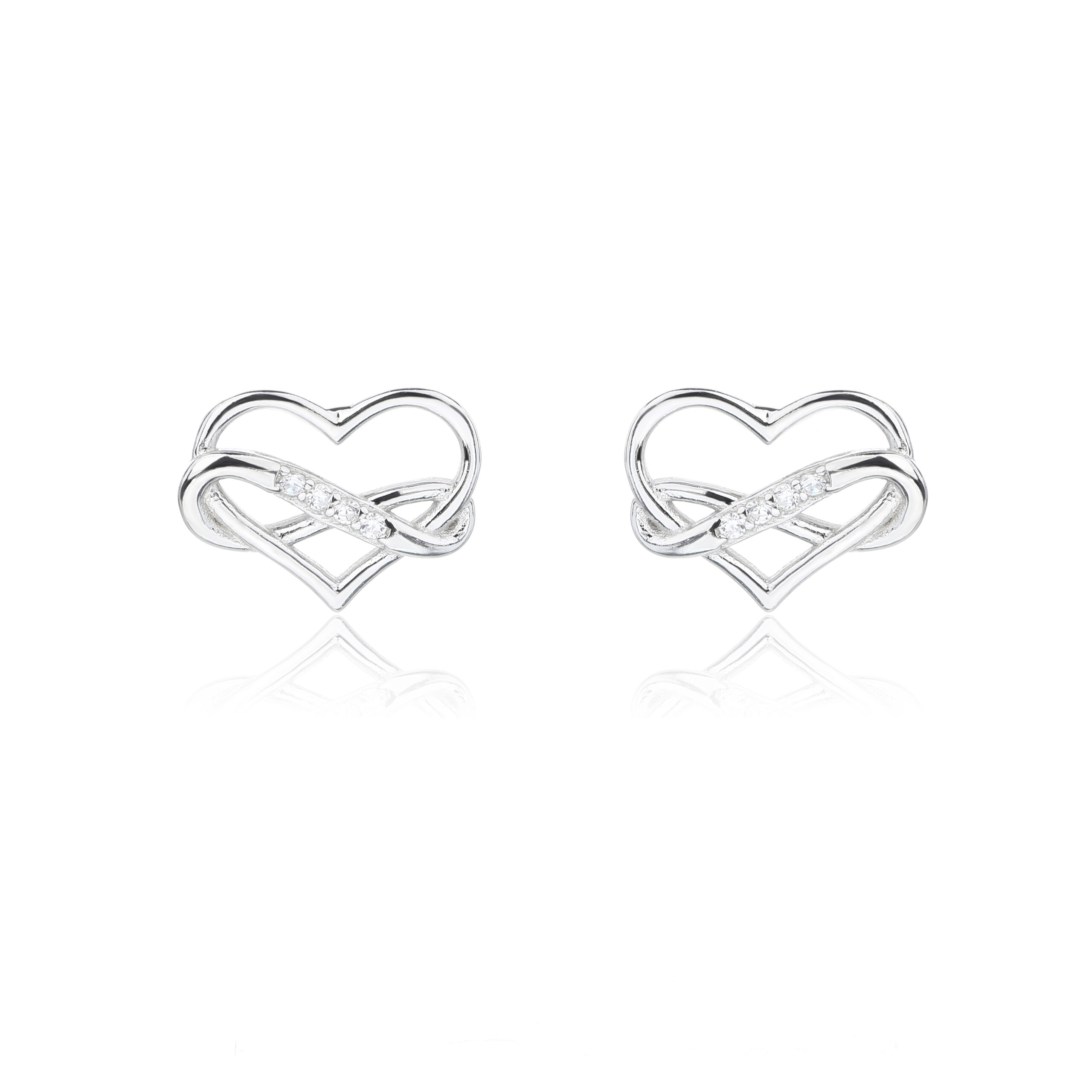 Kolczyki srebrne serduszka nieskończoność infinity z cyrkoniami