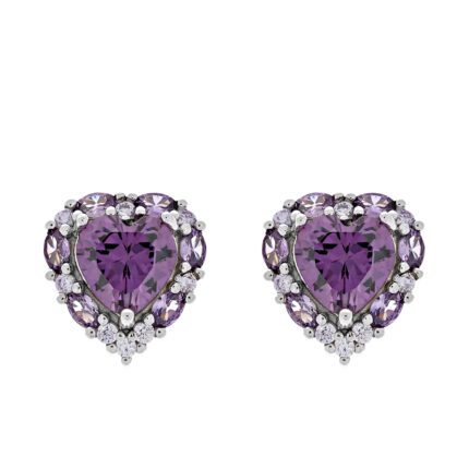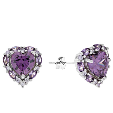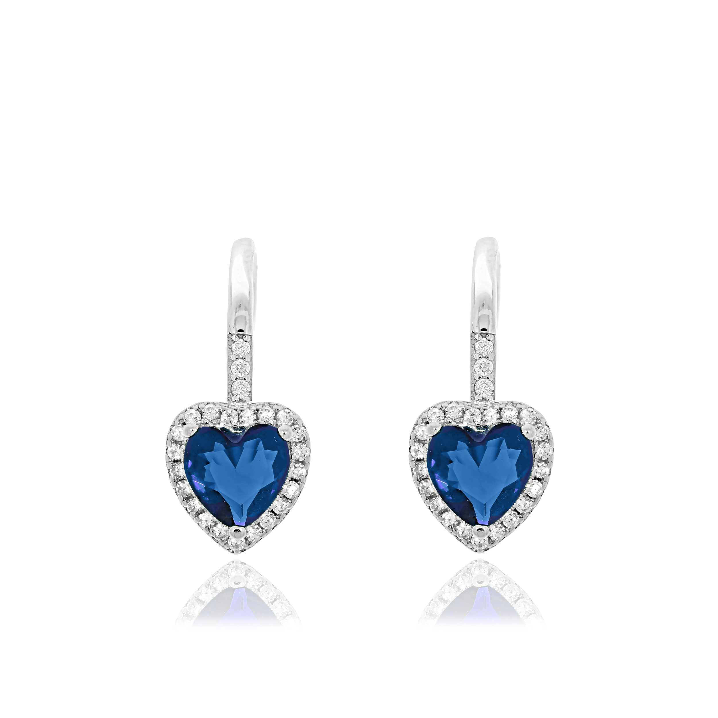 Kolczyki srebrne serduszka szafirowe z cyrkoniami