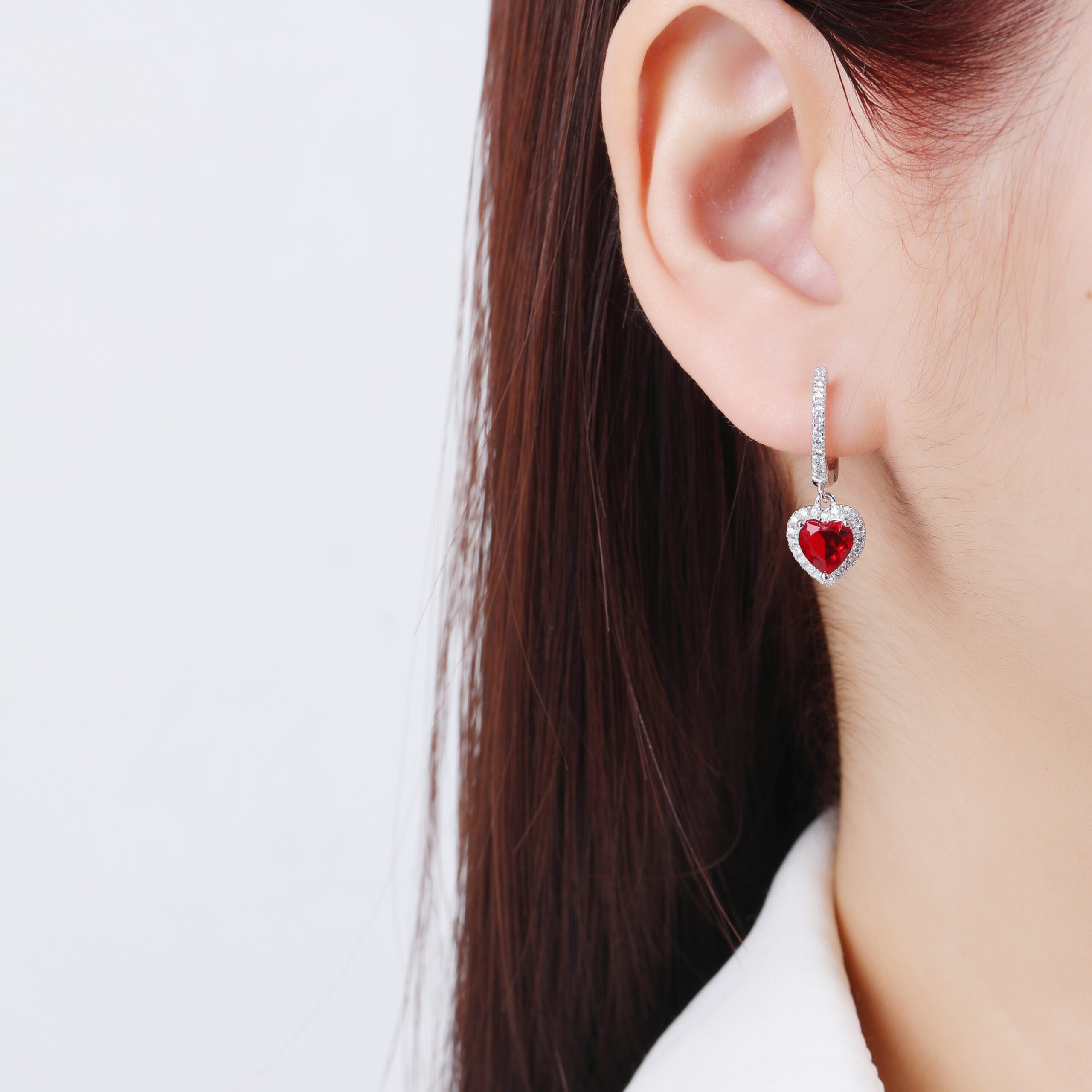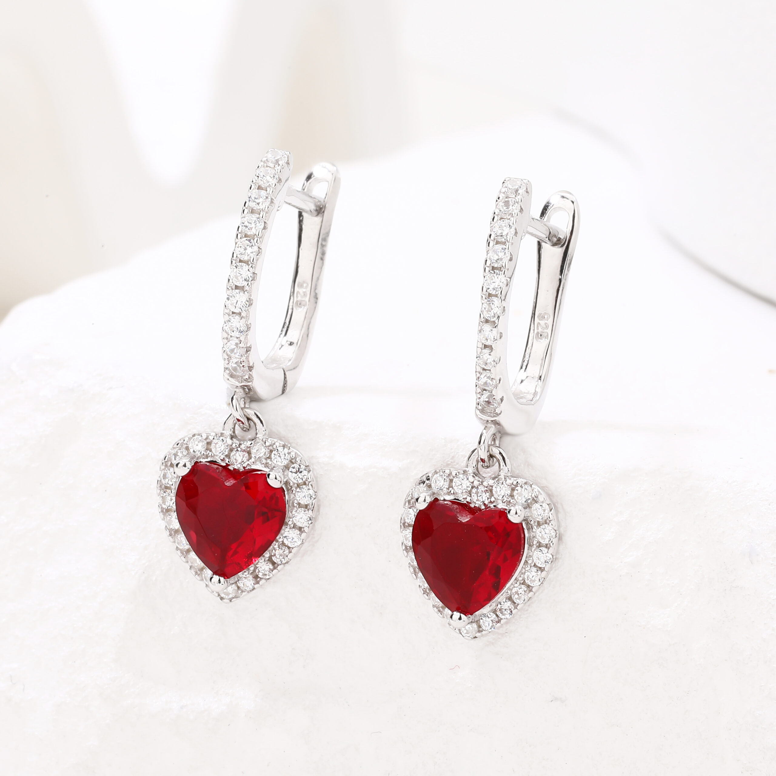 Kolczyki srebrne serduszka czerwone cyrkonie