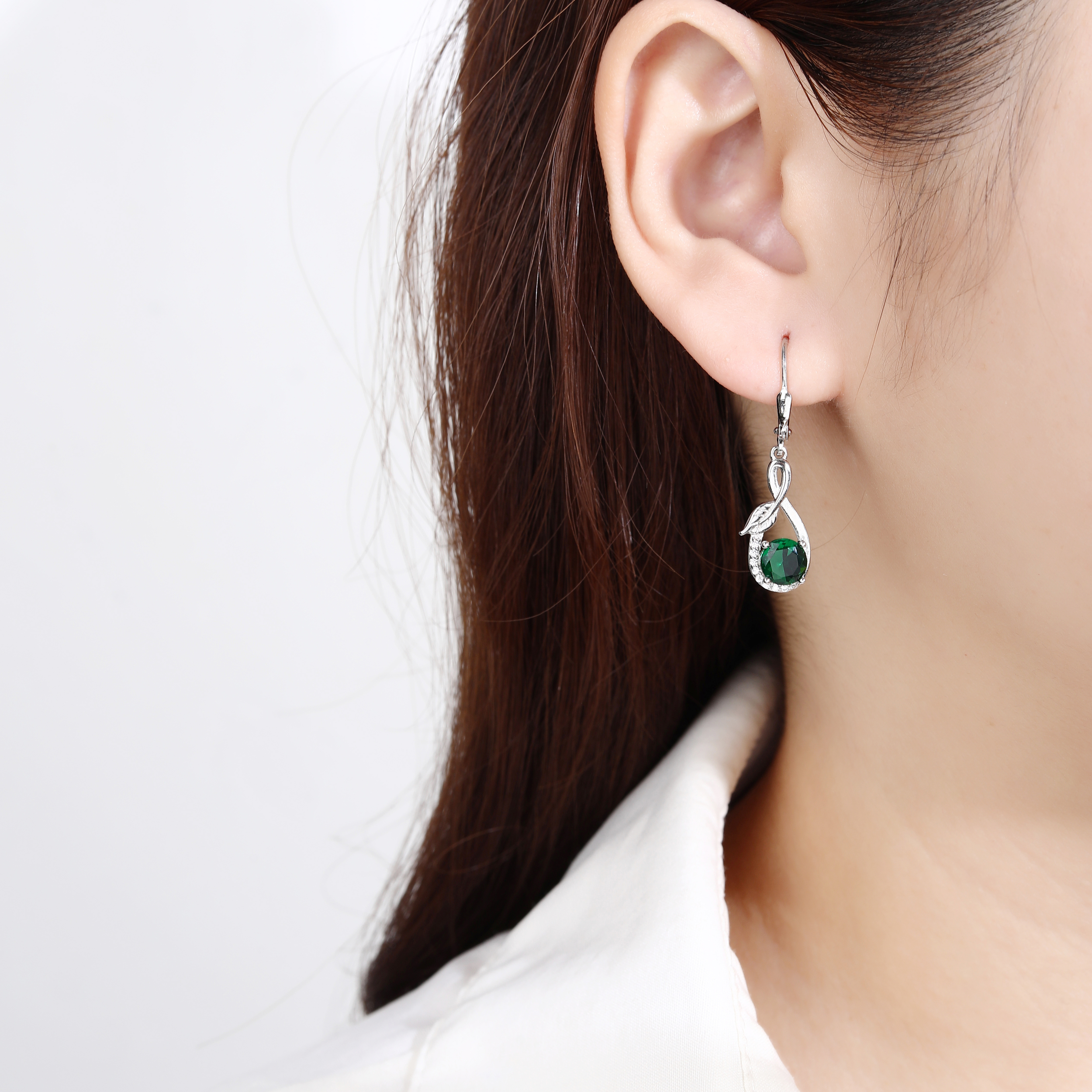 Kolczyki srebrne wiszące listki cyrkonie szmaragdowe