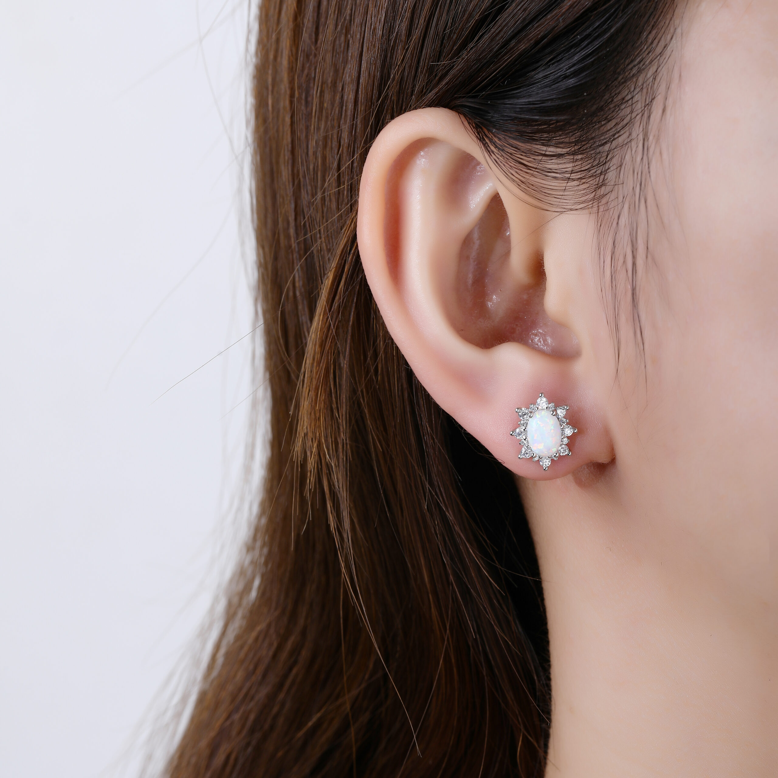 Kolczyki srebrne z kamieniem w kolorze białego opala