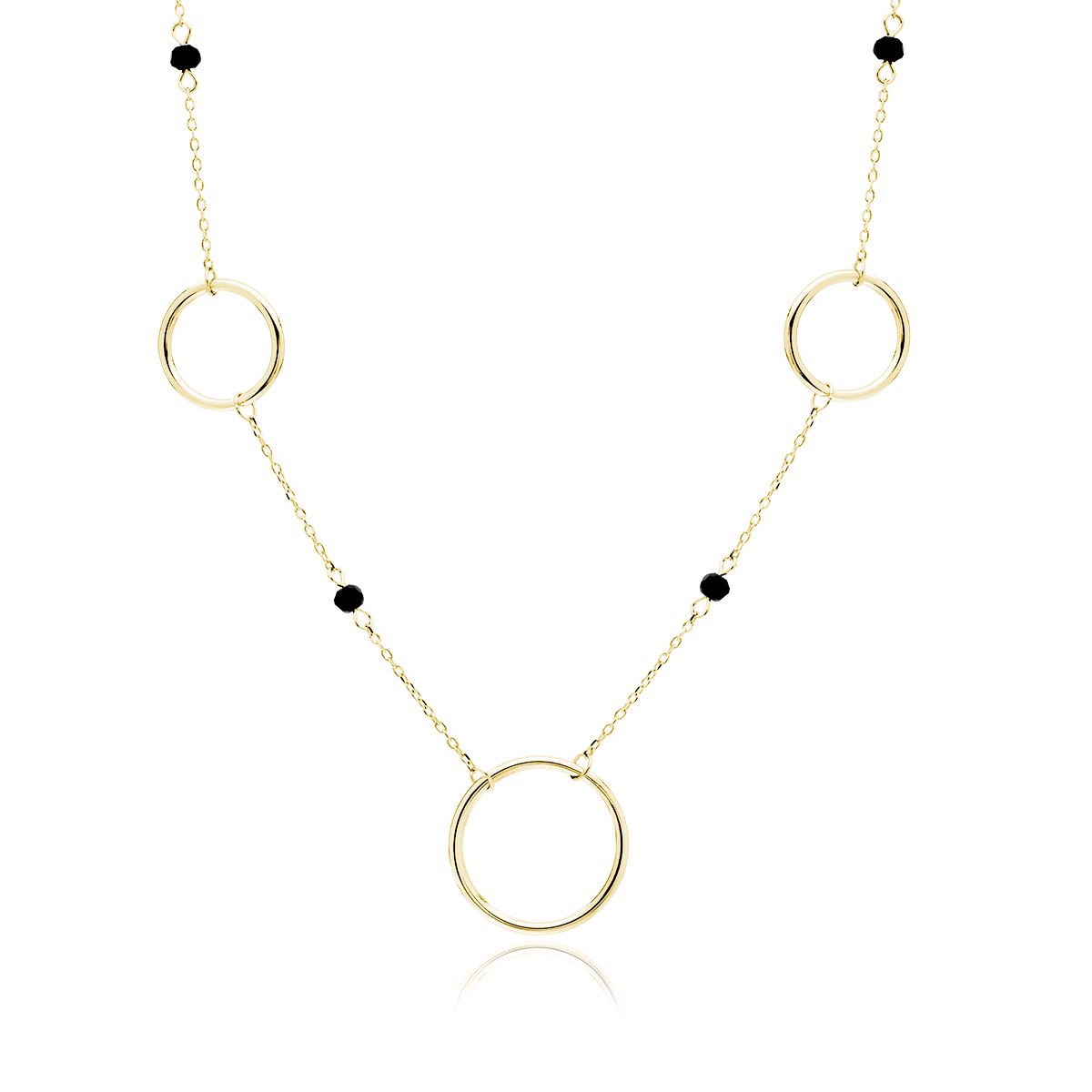 Naszyjnik srebrny pozłacany kółka i czarne spinele