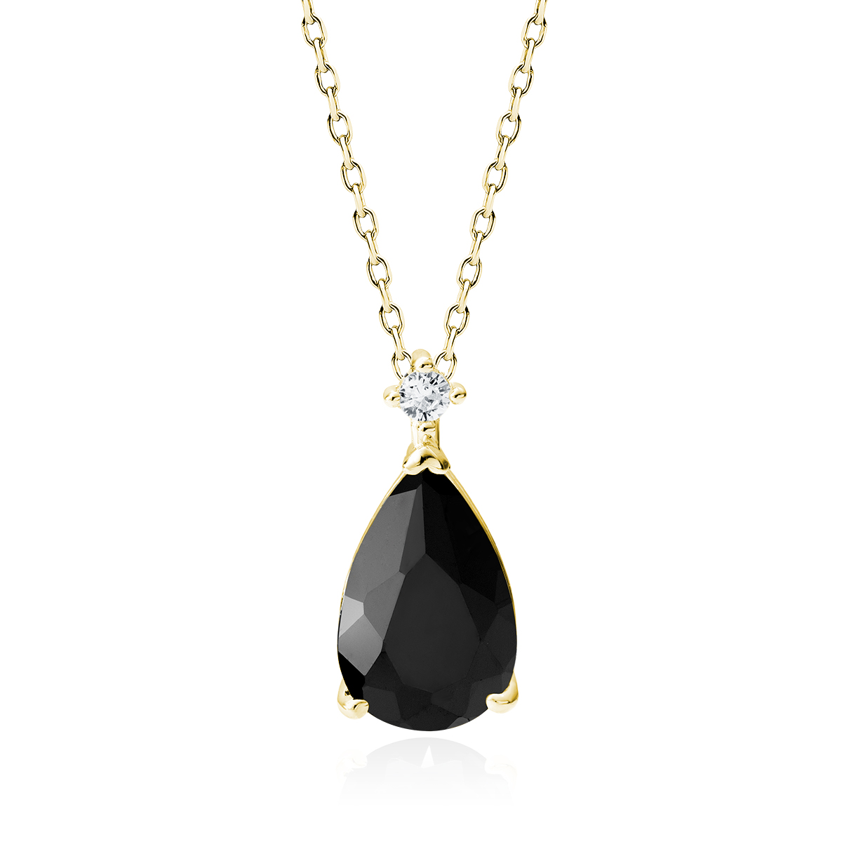 Naszyjnik srebrny pozłacany z czarną cyrkonią łezką