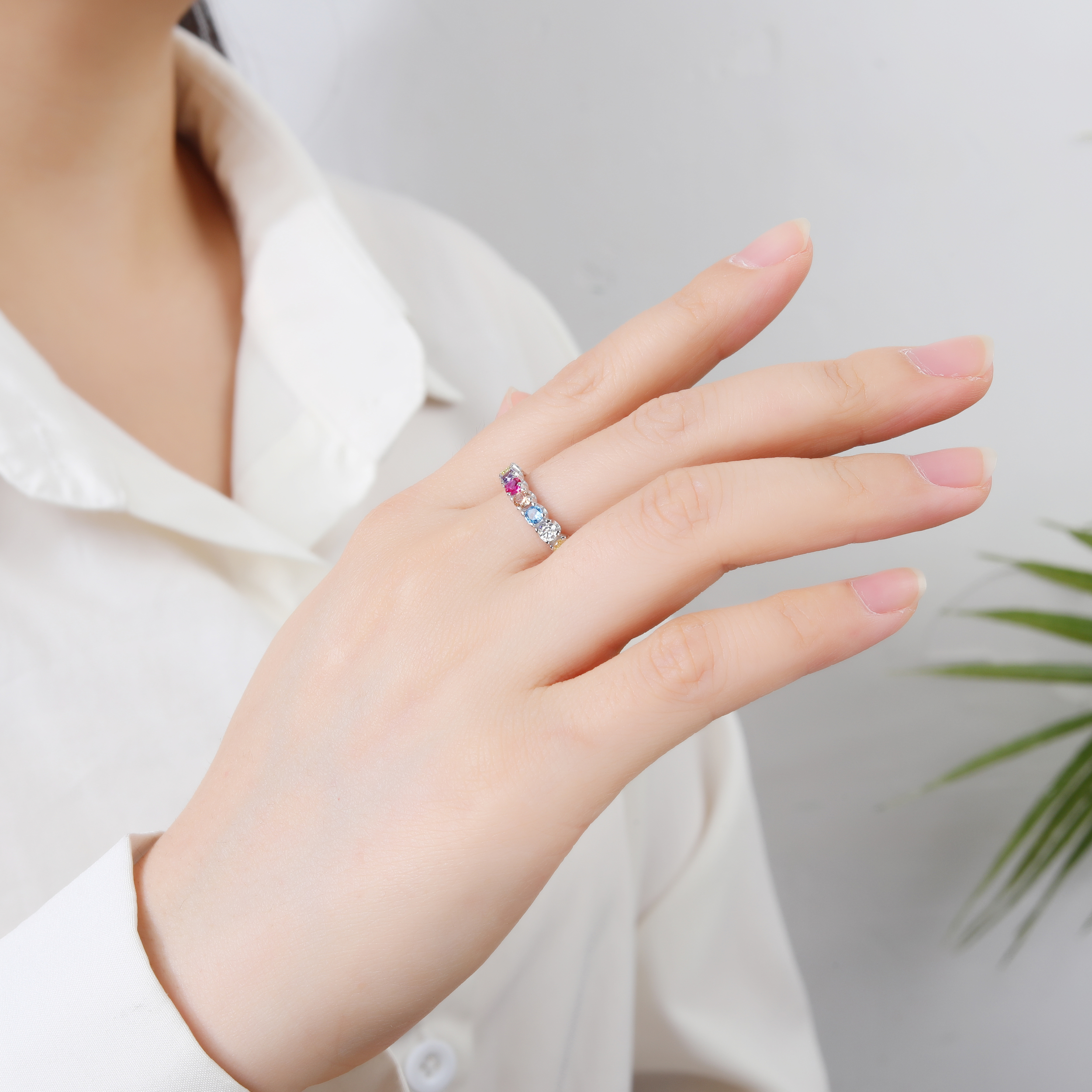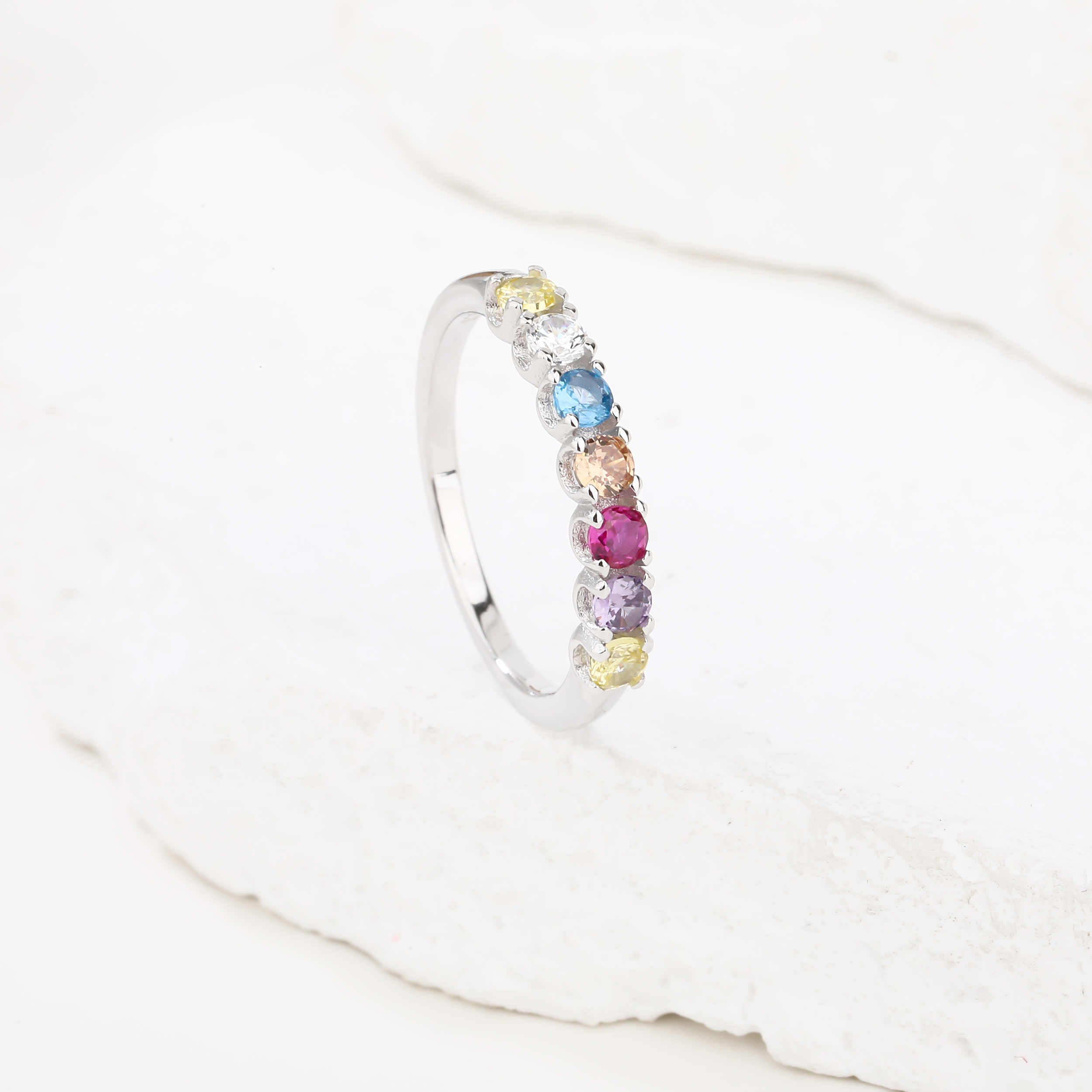Pierścionek srebrny z kolorowymi cyrkoniami