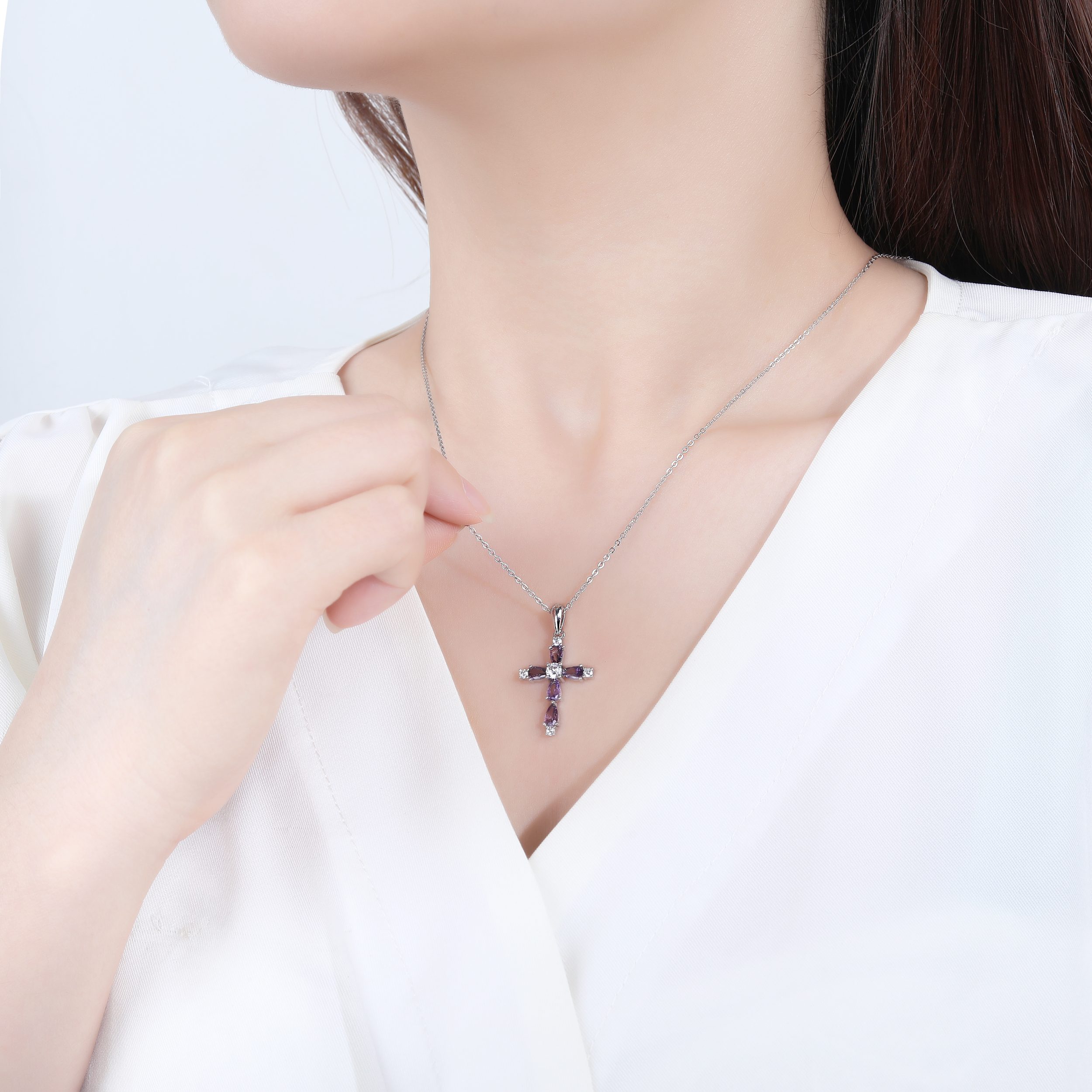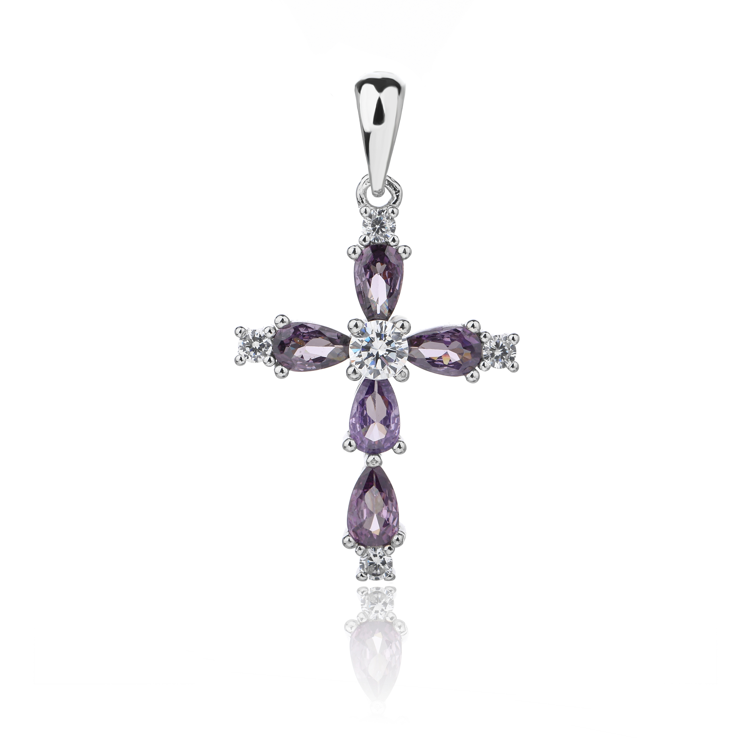 Zawieszka srebrna krzyżyk cyrkonie fiolet