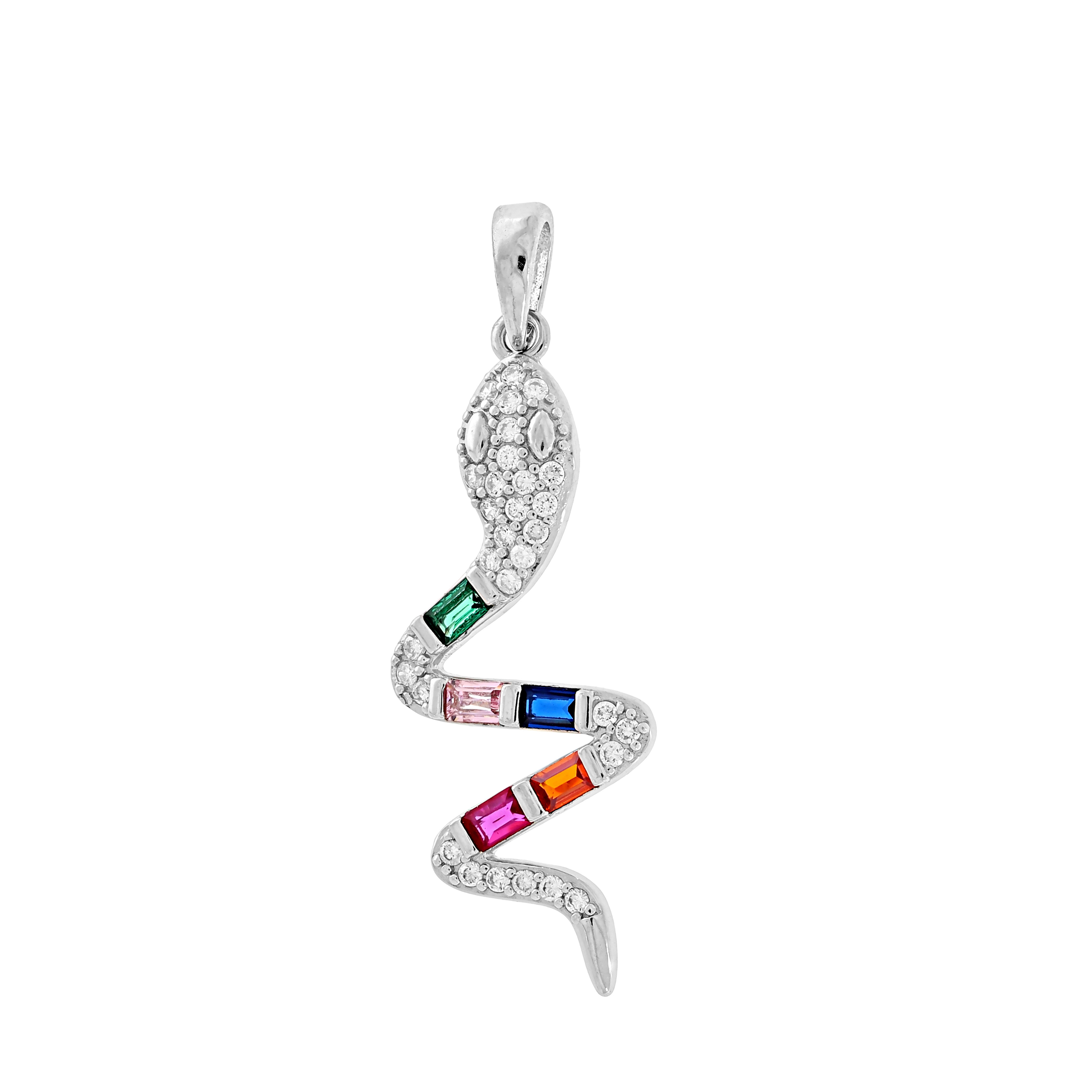 Zawieszka srebrna wąż z kolorowymi cyrkoniami