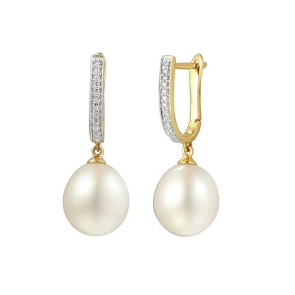 Kolczyki złote z perłą i diamentami