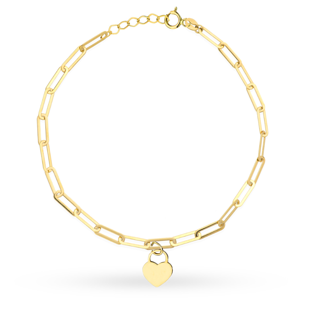 Bransoletka złota długie ogniwa i kłódka – serce