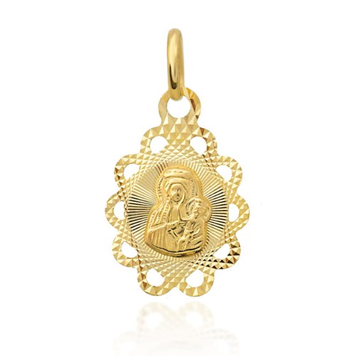 Medalik złoty z Matką Boską Częstochowską