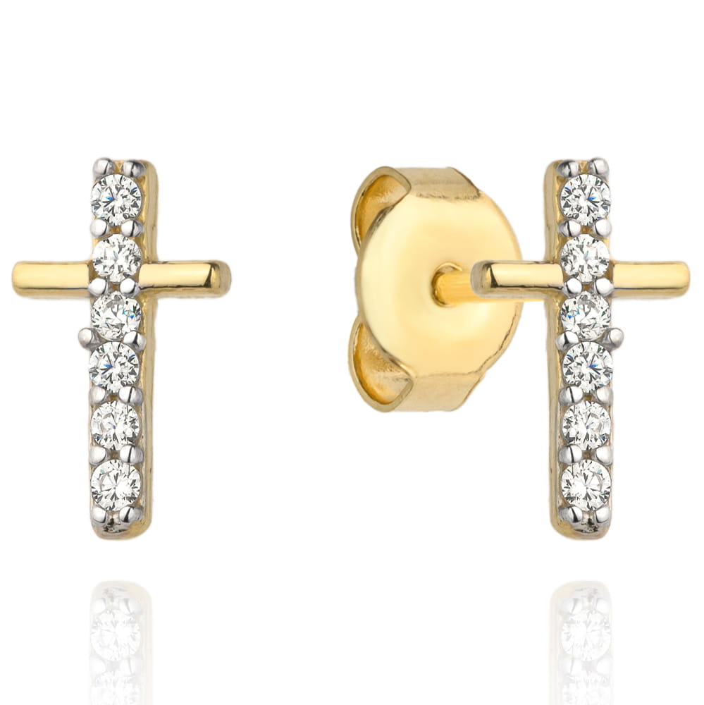 Kolczyki złote krzyżyki z cyrkoniami